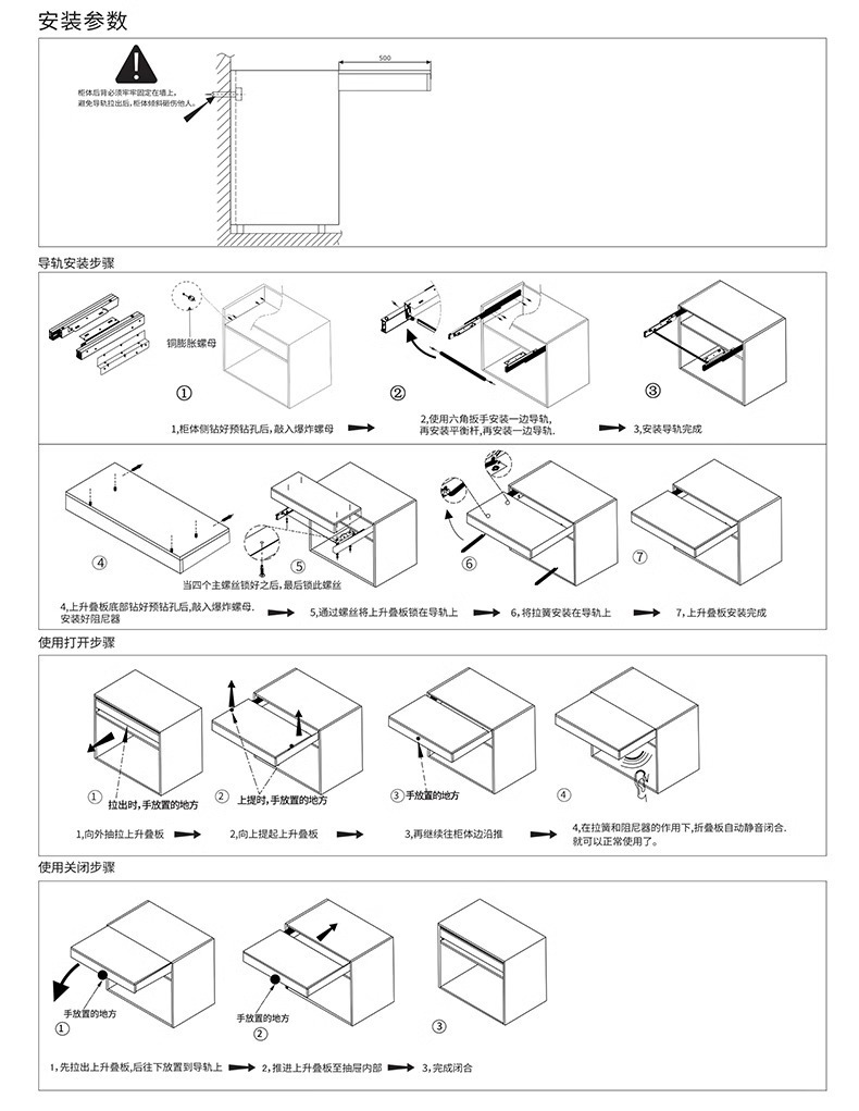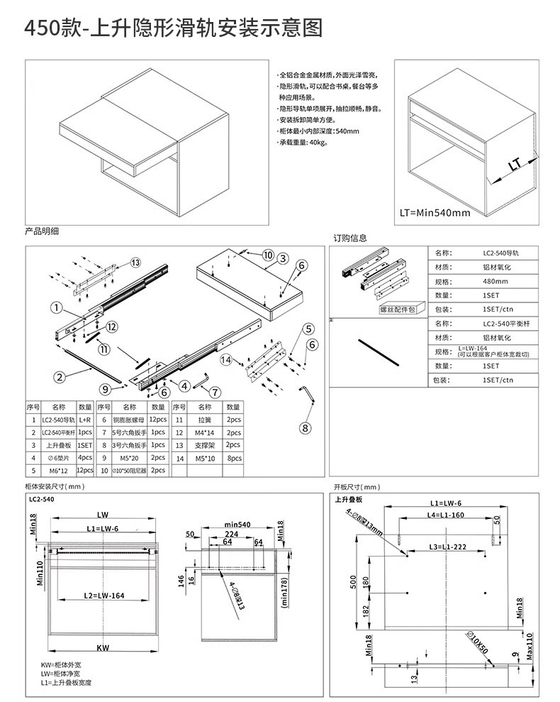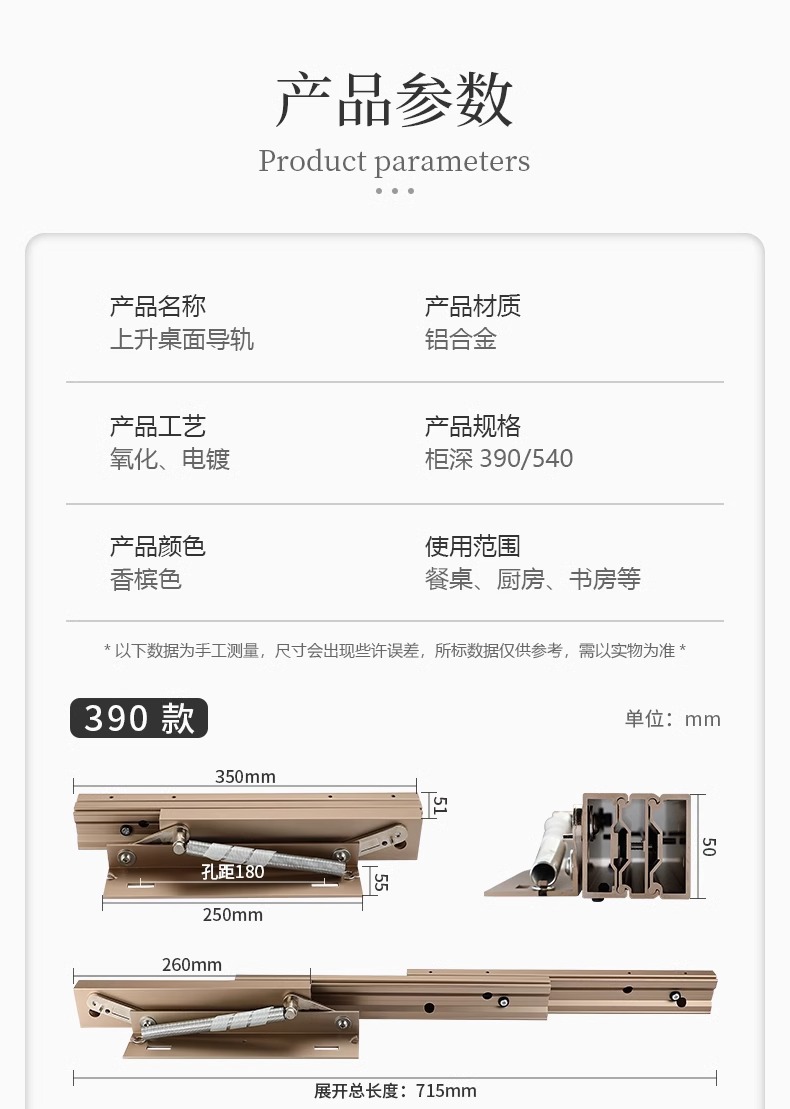 Bản lề ray trượt mở rộng mặt bàn thông minh chịu tải lớn VNM-1525