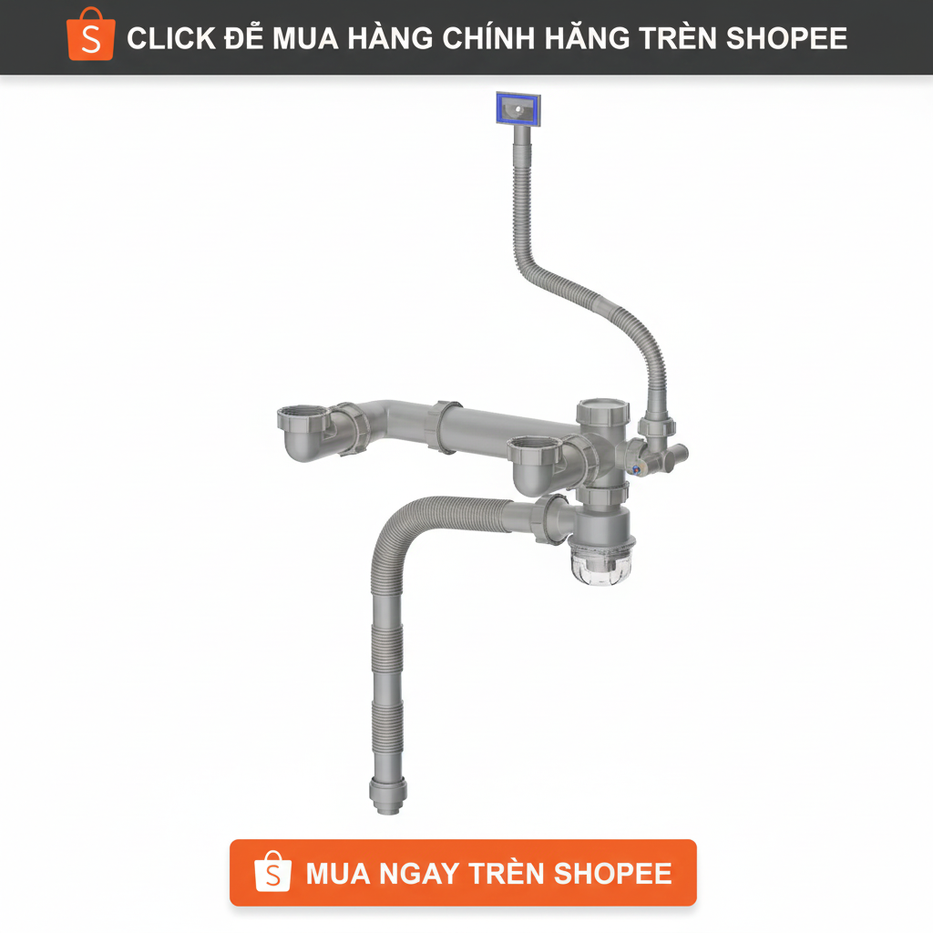 Bộ xiphong thoát nước ngăn mùi chống tắc nghẽn cho bồn rửa bát 2 hố