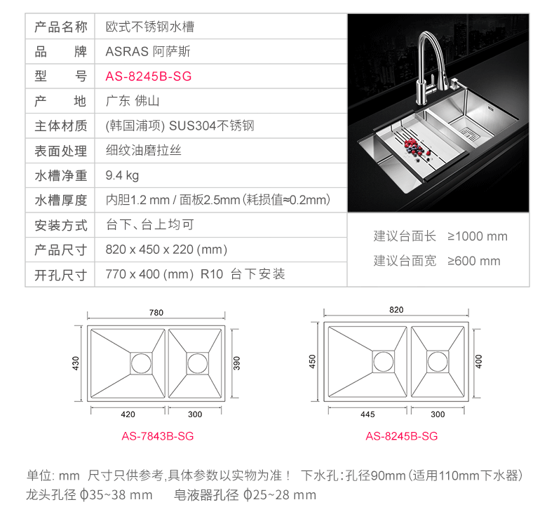 Chậu rửa bát âm chất liệu inox SUS304 chậu đôi VNM-ARAS-3009