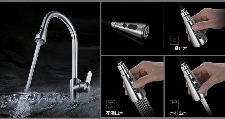 Vòi rửa bát kéo dài lõi đồng nguyên chất hai chế độ xả