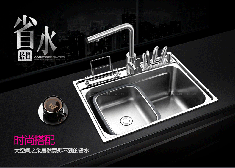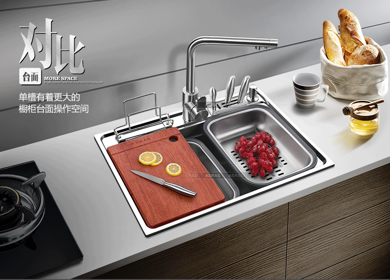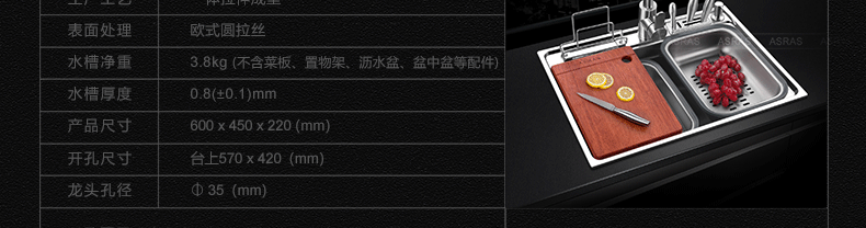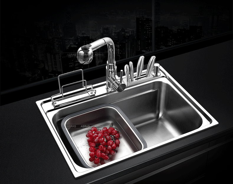 Chậu rửa bát kèm giá để dao thớt tiện dụng vòi rửa đa năng VNM-ARAS-0208