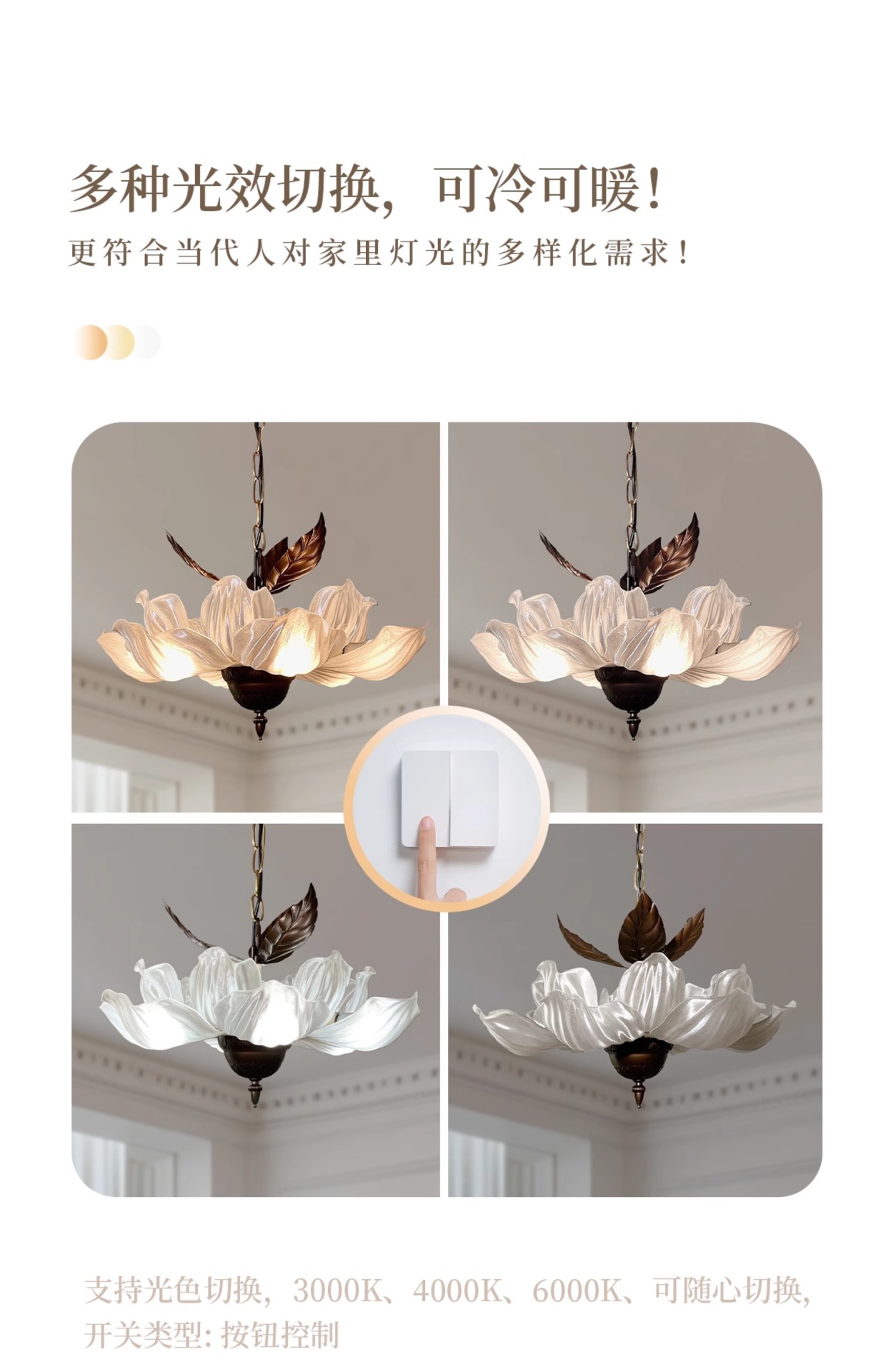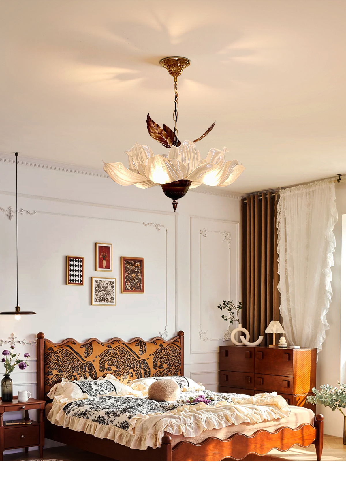 Đèn chùm thả trang trí phòng khách phòng ngủ hình bông hoa phong cách cổ điển Pháp VNM-L11225