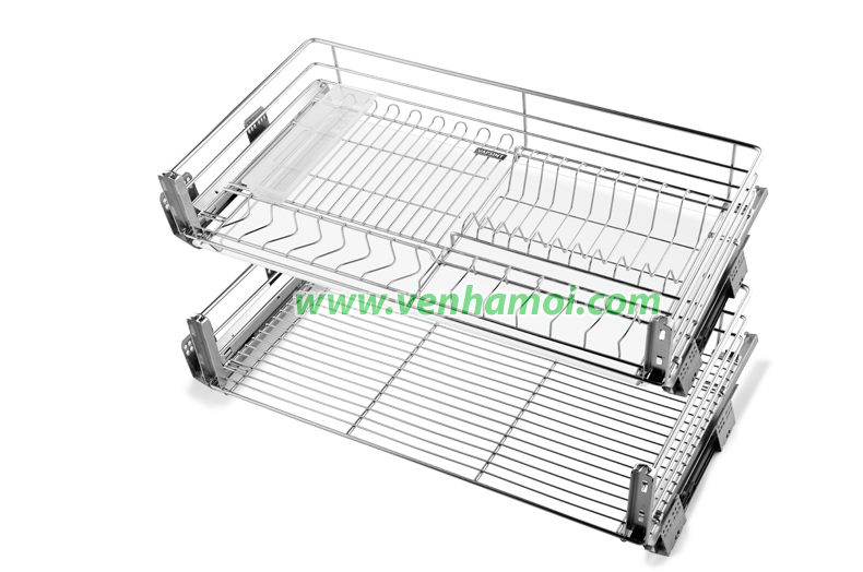 Giá đựng bát đĩa hai tầng inox 304 kèm thanh ray giảm chấn