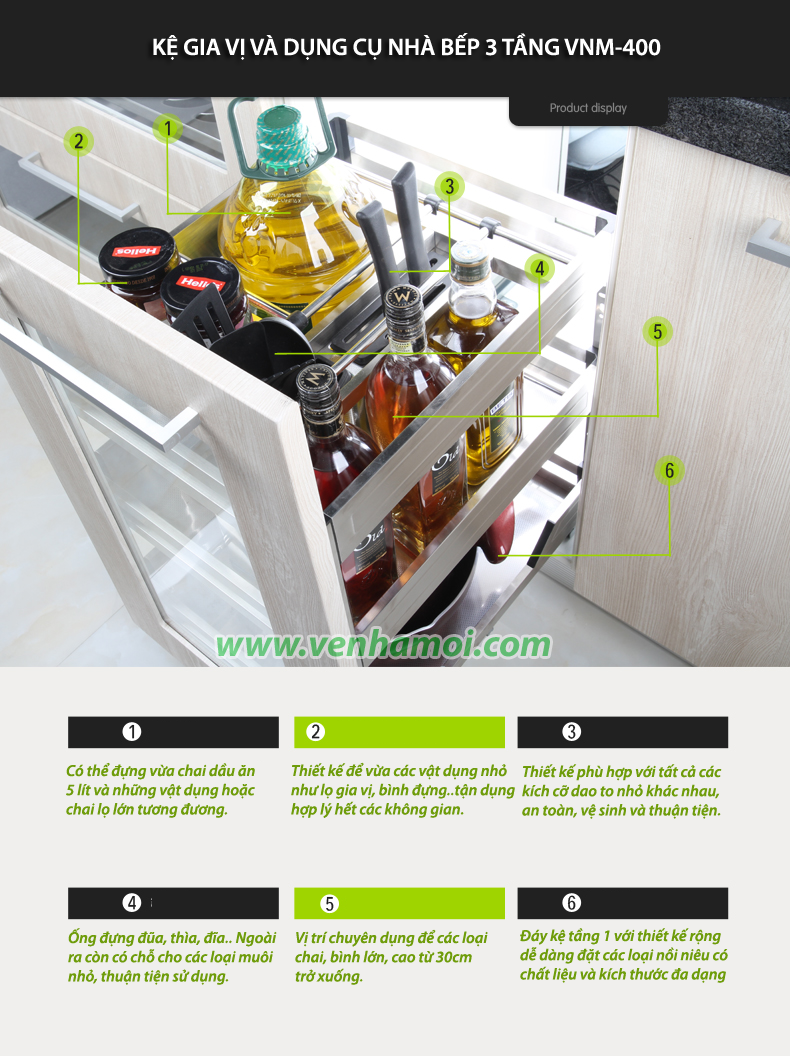 - Chất liệu: INOX304 cao cấp. - Các thanh ngang sử dụng Inox304 hộp, độ dày và độ rộng chắc chắn. - Bề mặt đáy kệ là Inox304 được dập lỗ, chống trơn, không hằn vết vân tay, và lau sạch dễ dàng - Các khay kệ được thiết kế liền mạch 1 khối bằng Inox304 không có mối hàn, chắc chắn và bền khi sử dụng. - Diện tích ngoài nhỏ gọn - nhưng dung tích trong chứa lớn, tận dụng được tất cả các không gian phù hợp với đa dạng các vật dụng khác nhau. - Sử dụng Inox304 chất lượng cao - hàm lượng chì thấp an toàn cho sức khỏe - Bề mặt phủ mịn Inox sợi, càng dùng càng sáng bóng - Thanh ray giảm chấn giúp đóng tủ khít và nhẹ hơn - tránh va chạm mạnh |