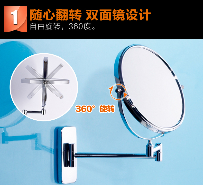 Gương phòng tắm mạ Chrome chất liệu đồng cao cấp có thể xoay 360 độ VNM-6008F
