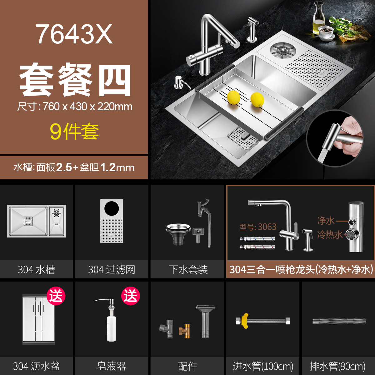 Chậu rửa bát kèm máy rửa cốc Chậu rửa bát kèm máy rửa ly chén Chậu rửa bát inox SUS304 Chậu rửa bát 1 hố kèm máy rửa cốc chén Máy rửa chén kèm bồn Máy rửa chén tích hợp bồn rửa