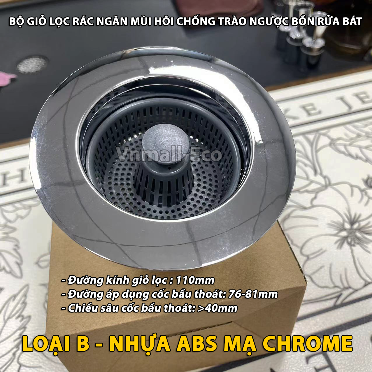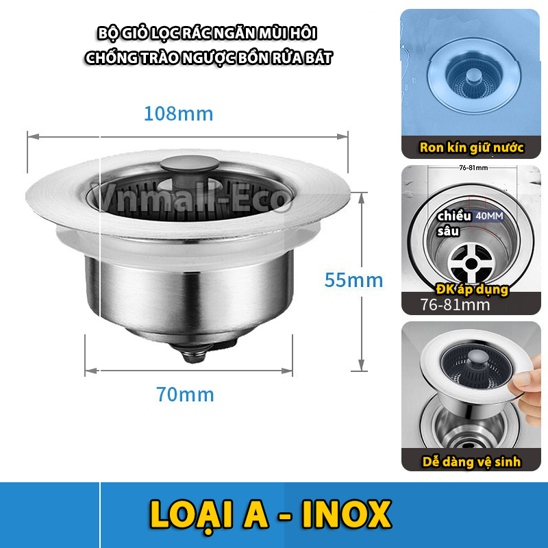 bộ lọc rác ngăn mùi chống trào ngược bồn rửa bát, lọc rác ngăn mùi hôi chất liệu inox cao cấp bộ lọc rác thức ăn thừa ngăn mùi hôi chống vi khuẩn côn trùng trào ngược, lọc rác ngăn mùi hôi dễ vệ sinh dễ lắp đặt không gây tắc bồn rửa, giỏ lọc có 2 chất liệu chính là nhựa ABS và inox