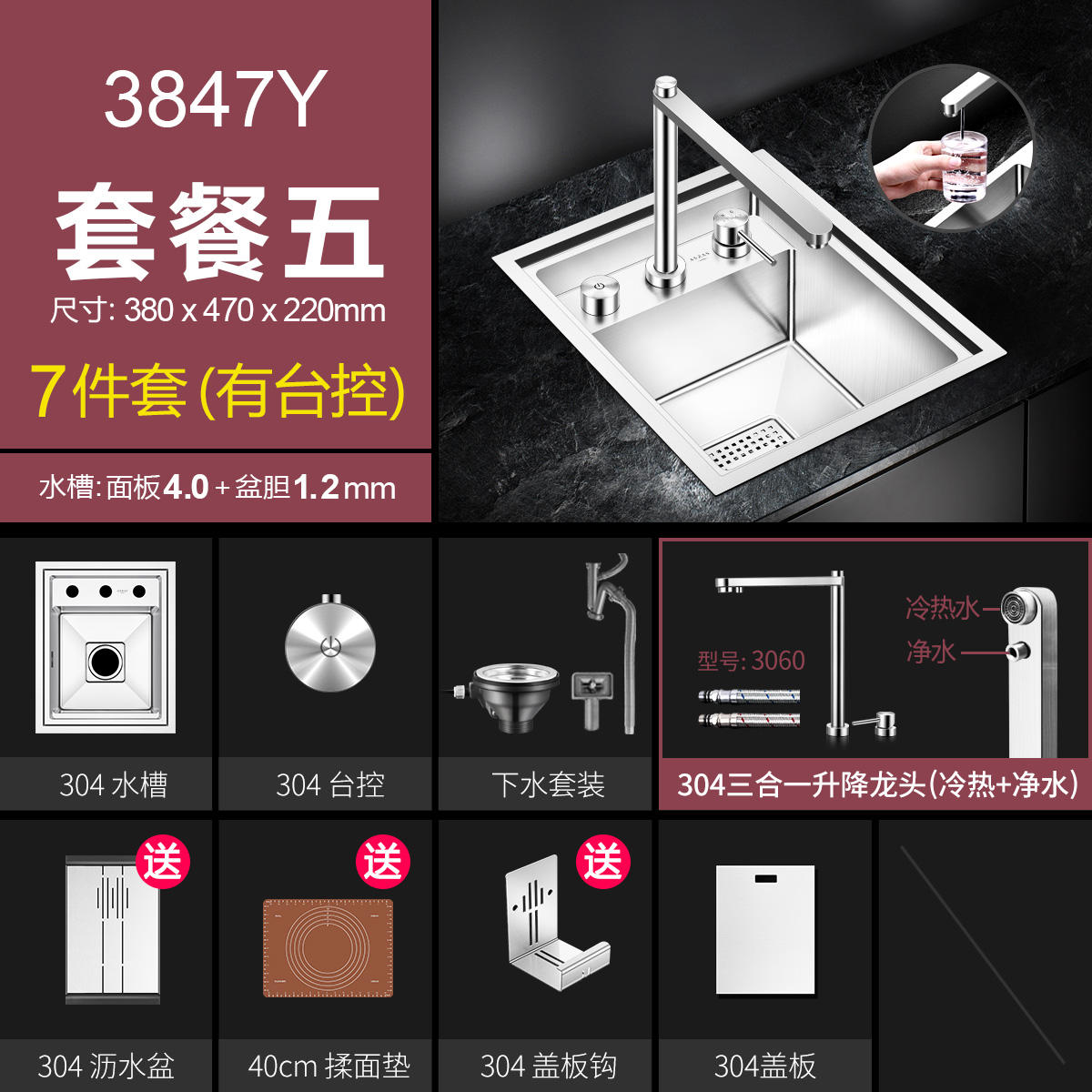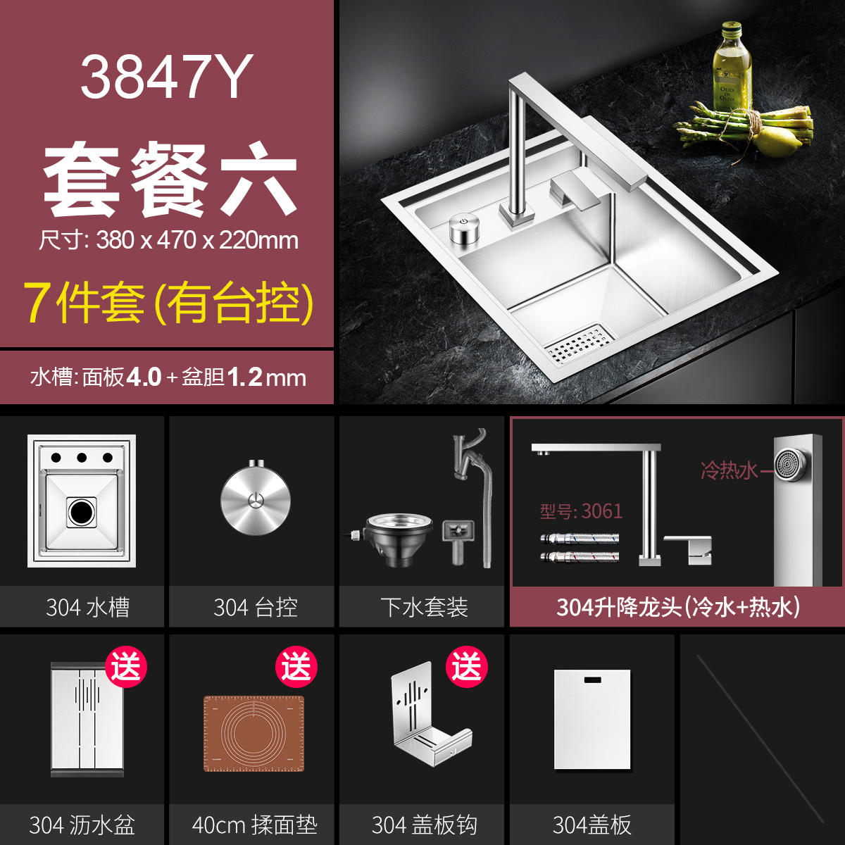 Chậu rửa bát một hố chất liệu inox304. Chậu rửa bát có thành dày độ ồn thấp Chậu rửa bát một hố loại nhỏ có núm xả tự động, chậu rửa có nắp đậy khi không sử dụng giúp khu vực chậu rửa bát của bếp ăn sạch sẽ vệ sinh