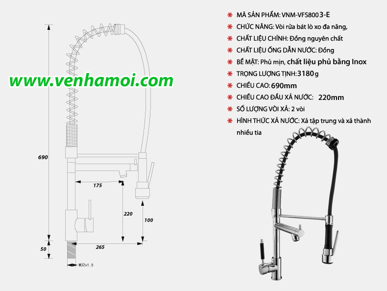 Vòi rửa bát lõi van gốm VNM-VFS8003-E