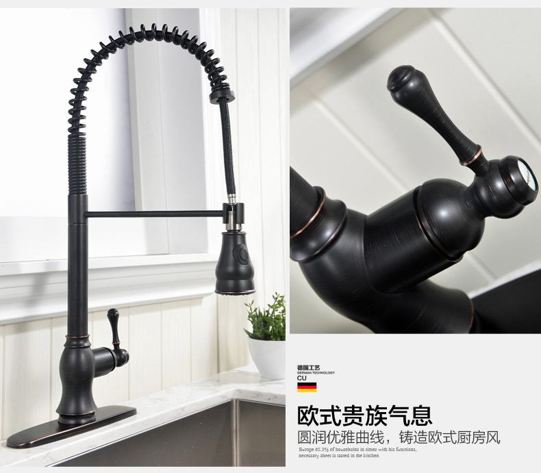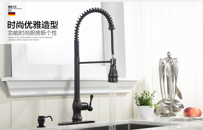 Thiết kế theo kiểu cổ điển, vòi rửa bát bọc xoắn ốc lò xo |